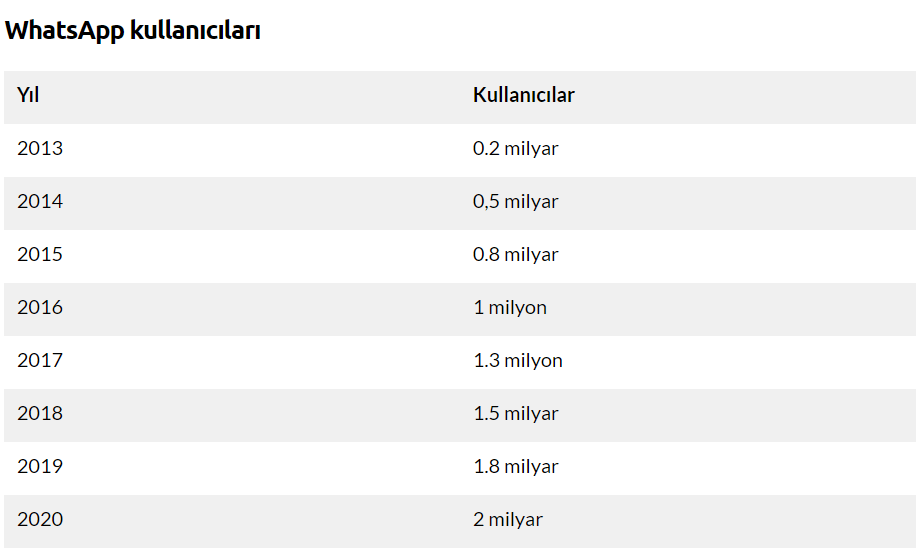WhatsApp, Facebook’a satıldığı 2014 yılından beri gelirlerini net olarak kamuoyuna açıklamamaktadır, bu sebeple yanlış yönlendirmemek için fazla sayısal veri yazmayacağım.
